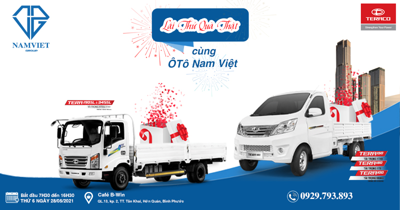 Giá Xe Tải Teraco Tera 190SL & Tera 345SL máy ISUZU/ Trạm dịch vụ 3s độc quyền tại Bình Phước.